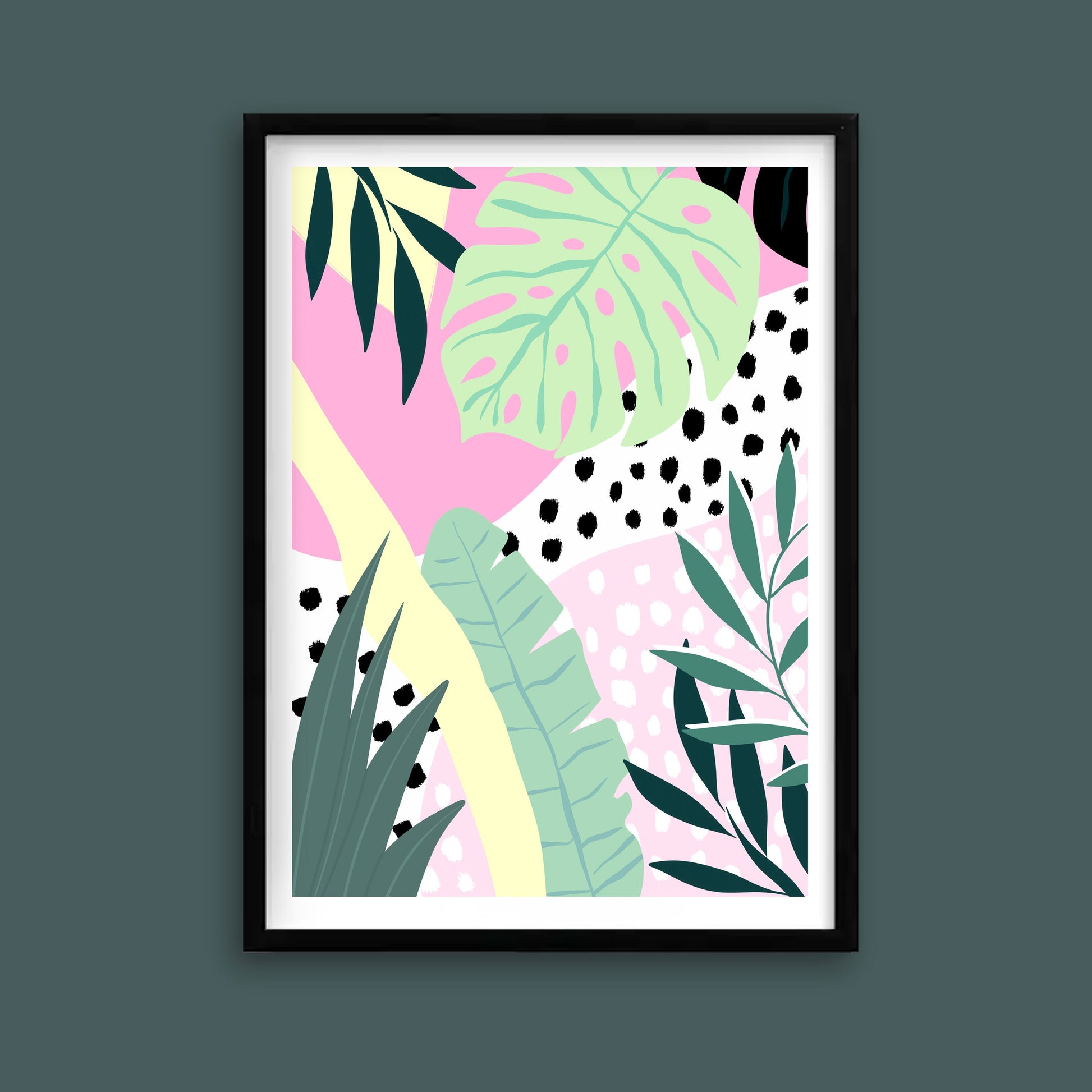 Botanical Abstract Print. Original hand drawn illustration. A perfect art print to add a pop of colour anywhere in your home!