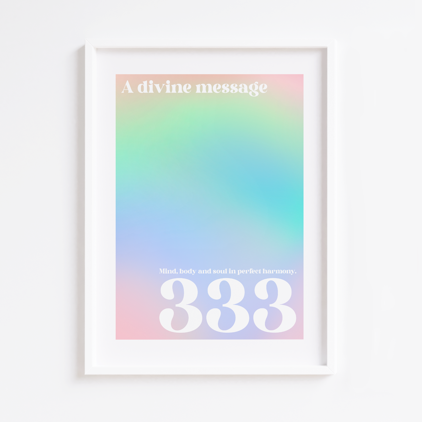 Angel Number prints. Choose between 333, 444 or 888. Each pastel gradient has been hand drawn to represent each divine message. A lovely way to give a room ambience with these gorgeous calming colours!åÊ