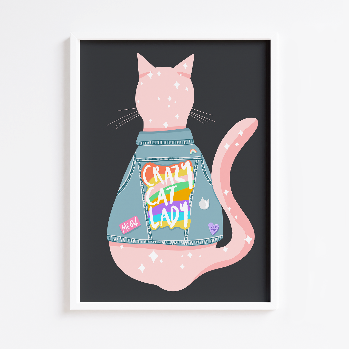 Perfect for any cat lover! Original illustration with hand written typographic. Very versatile and will look beautiful in almost any room, perfect to give that pop to the room!