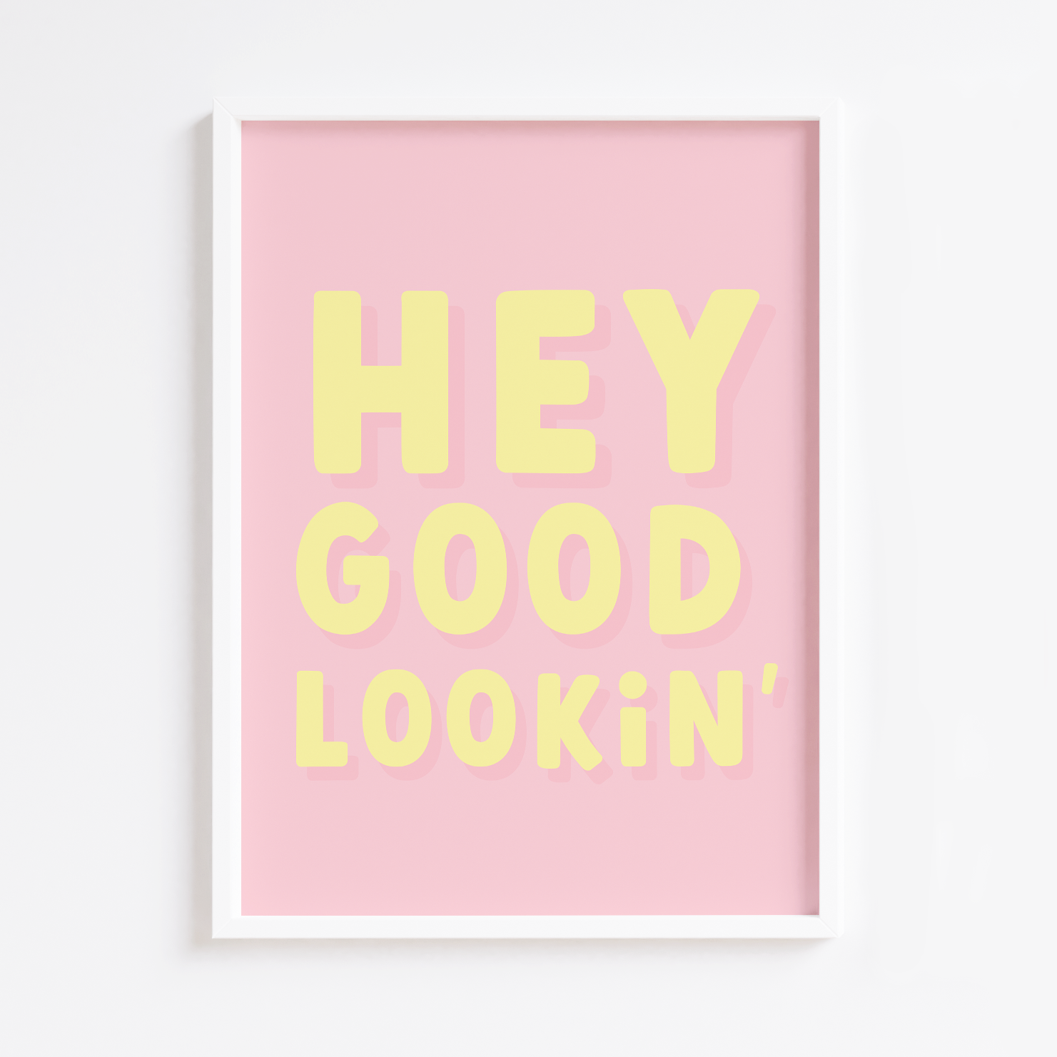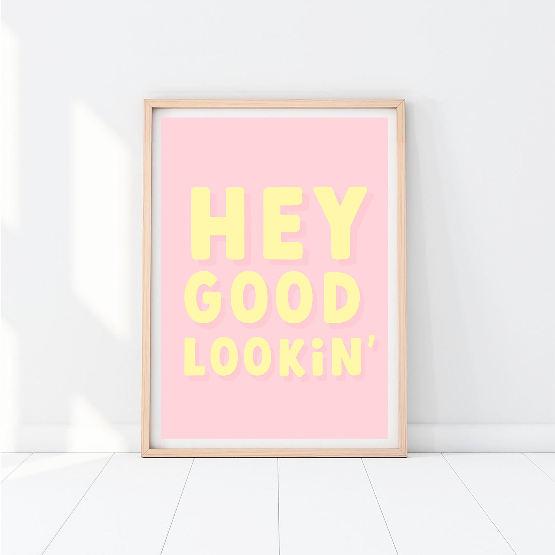 Hey Good Lookin' Print. Original typographic in perfect pastels. Perfect colourful and happy way to greet guests in the hallway or to add some sweetness and spice to your bedroom or office!