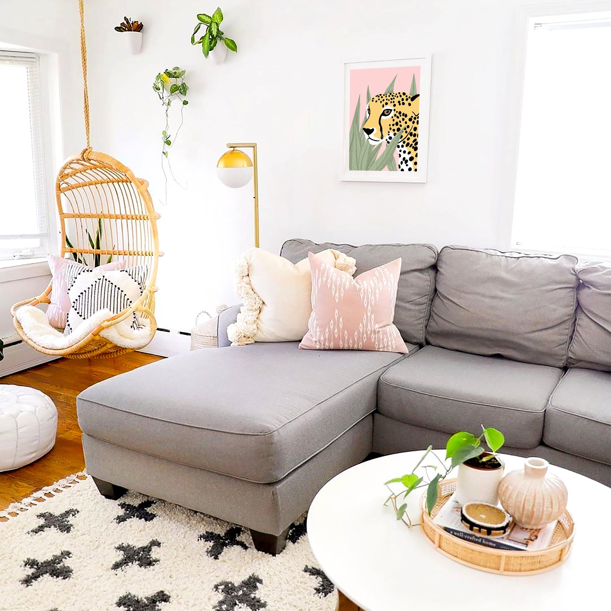Jungle Cheetah Art Print. With a perfect pastel pink background. This print would look gorgeous in almost any room! With the mix of soft hues and bold contrast, the details of this print will bring your space alive.