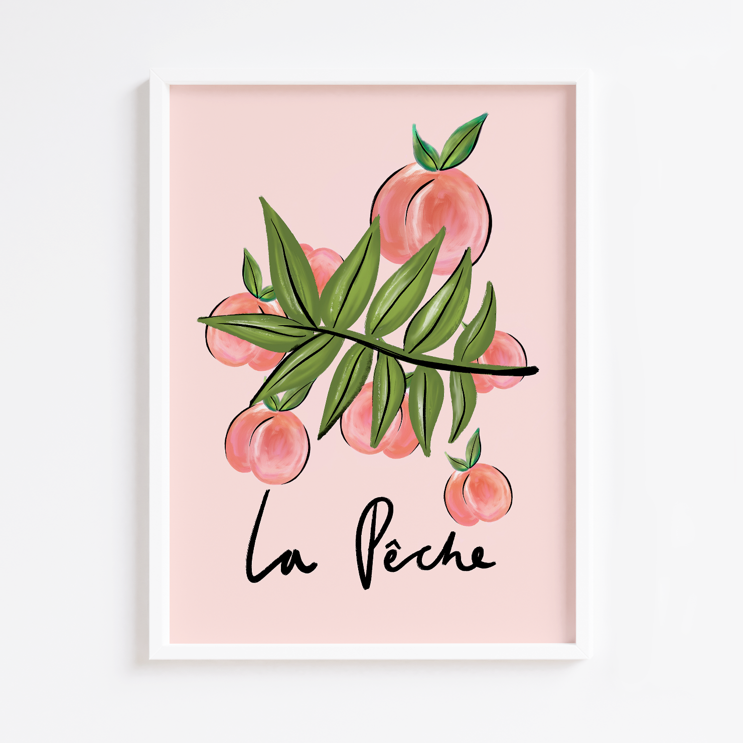 La Peche / The Peach. What a magical fruit eh? Pretty peachy pink painted peaches scattered around, modestly covered by a lovely leaf. Whats not to love? Perfect for adding femininity to the bathroom, adding fresh fruity vibes to the kitchen, or placed in your office space!