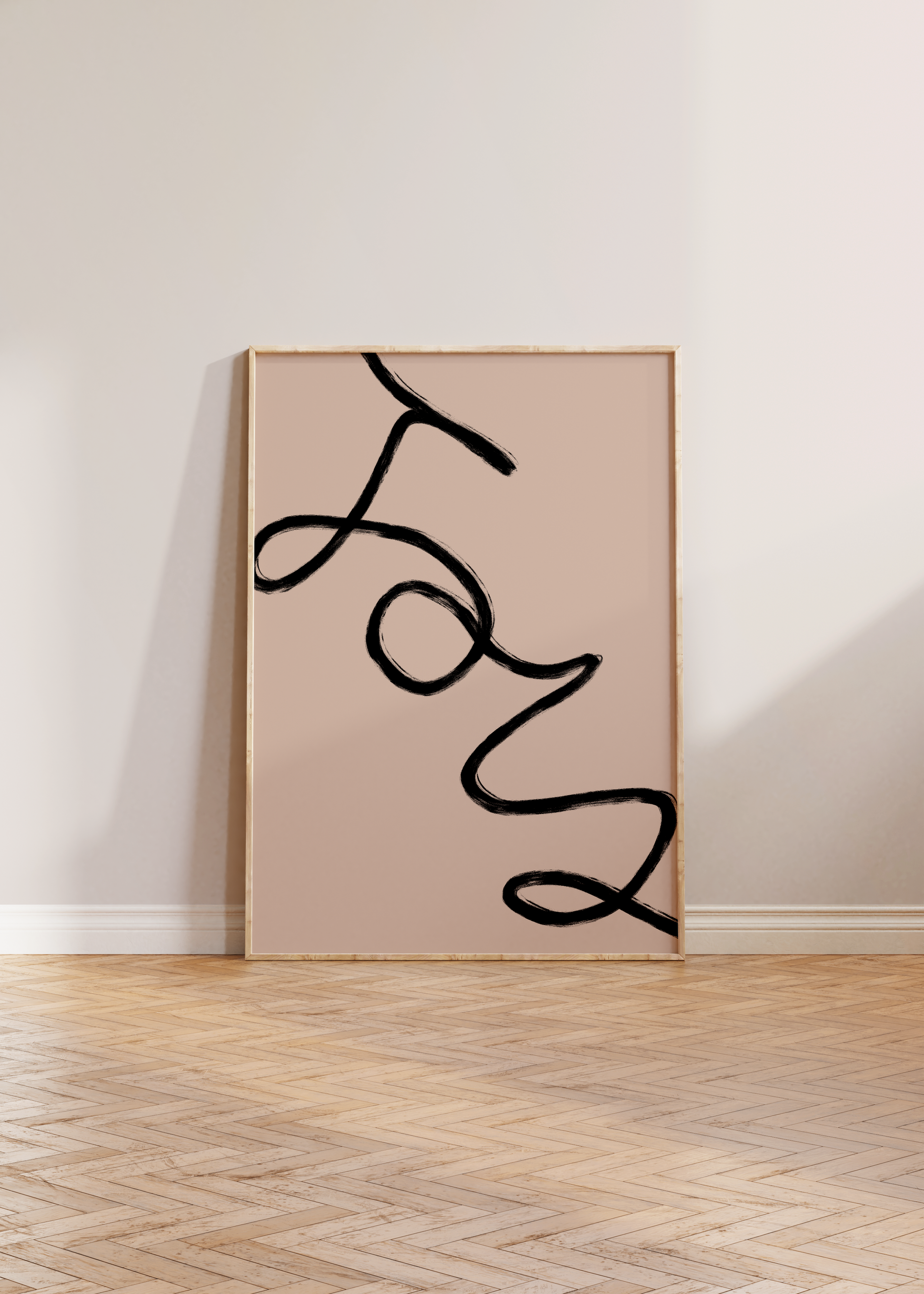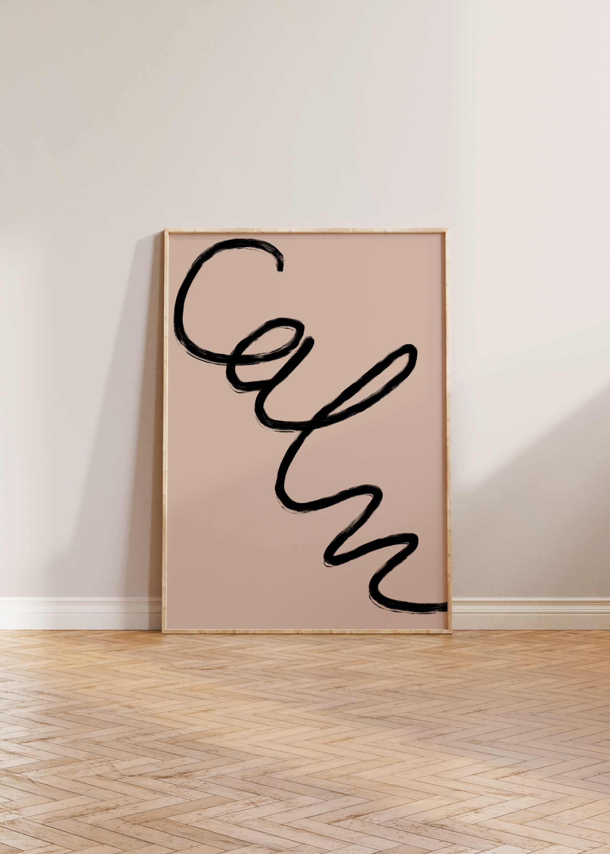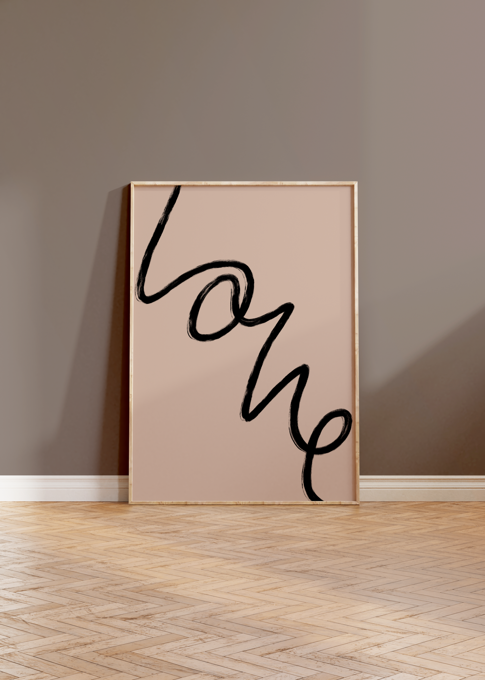 Neutral beige Joy, Love or Calm word art prints with highly detailed painted brush strokes in black. A lovely neutral abstract with a message that can go anywhere to add a touch of on-trend neutrals, from the bedroom to the hallway or living room.