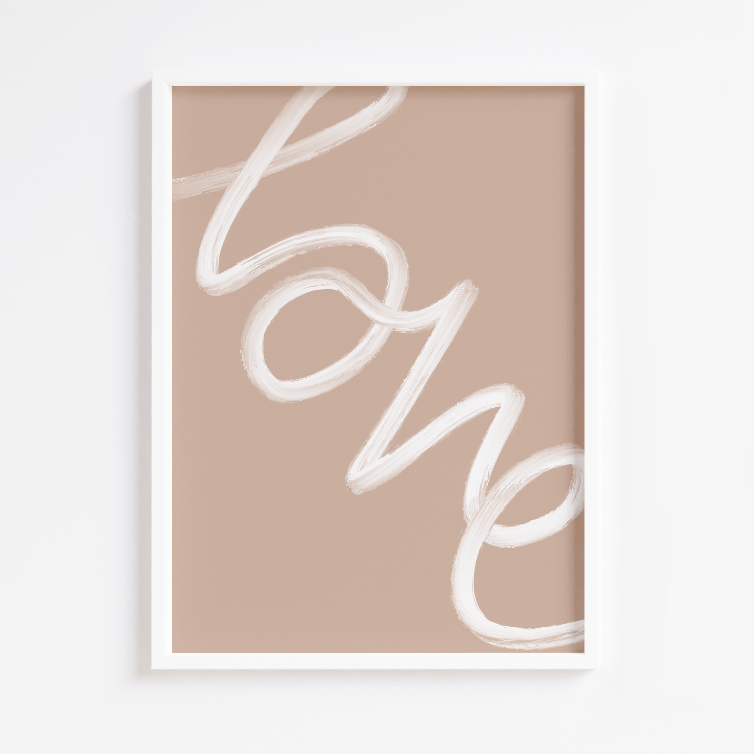 Neutral beige Joy, LoveåÊor Calm word art prints with highly detailed painted brush strokes in white. A lovely neutral abstract with a message that can go anywhere to add a touch of on-trend neutrals, from the bedroom to the hallway or living room.