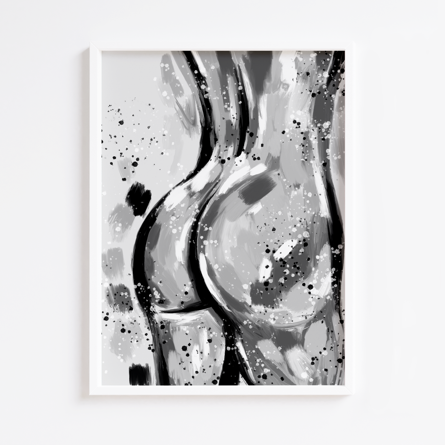 Black and White Painted Bum Print. Original and painted digitally making it really high quality. Perfect for adding femininity to your bedroom, bathroom or office space! Boobs version also available!