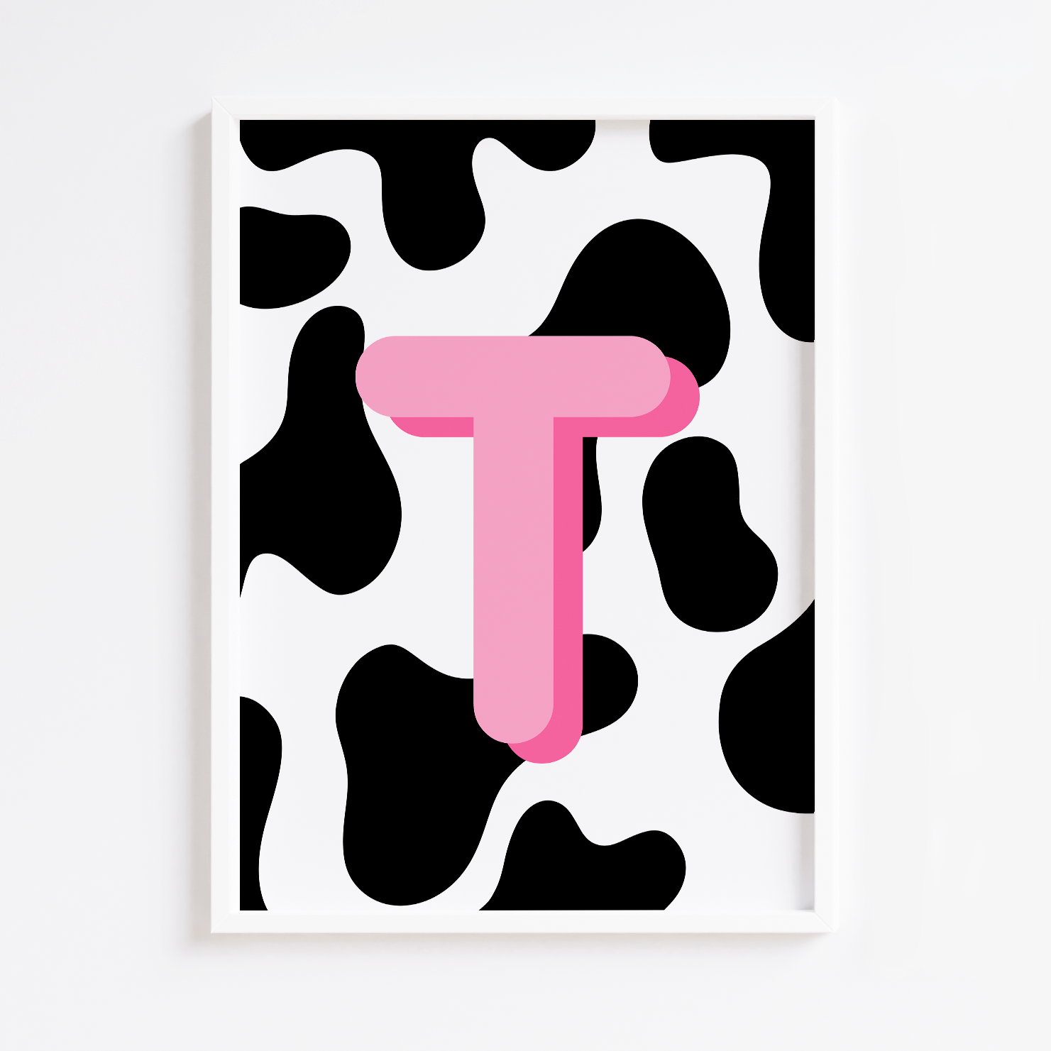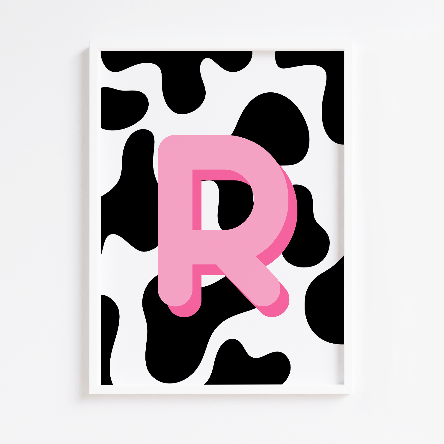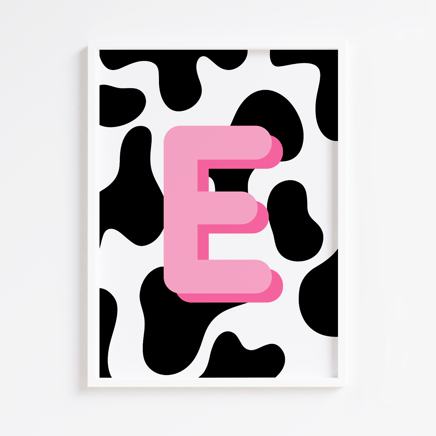 Personalised light pink letter with contrasting pink on a cow print background! Just choose your letter and I will make this for you! Perfect for your office, bedroom or nursery!