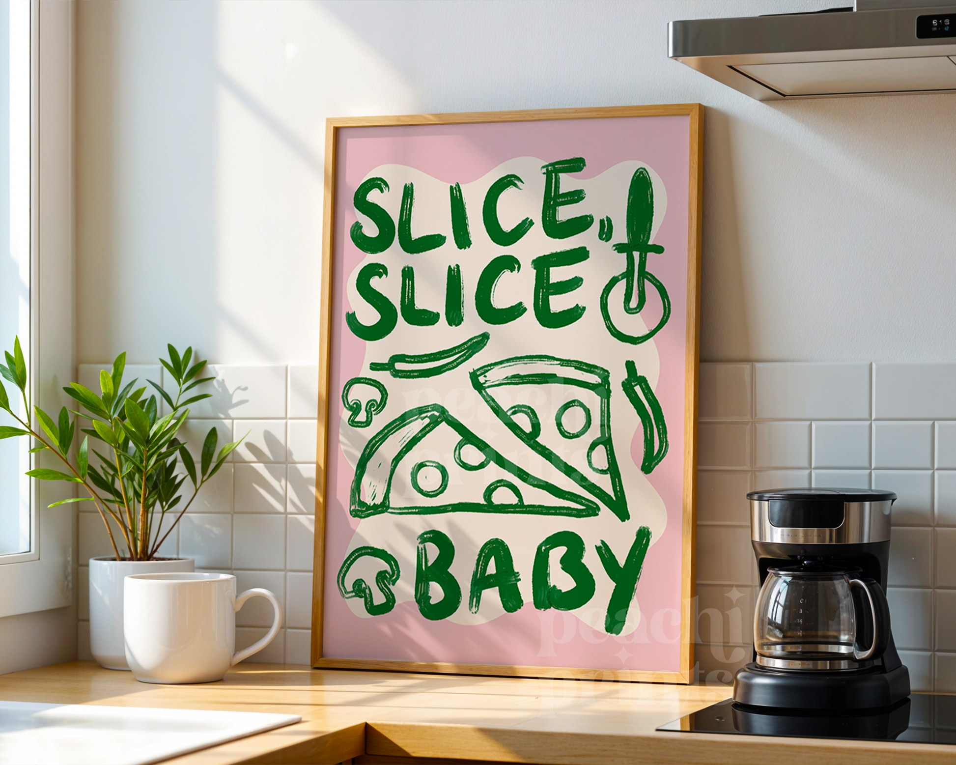 Pizza night is here to stay with this fun abstract kitchen print! Jazz up your kitchen with this playful art print, perfect for any foodie household!