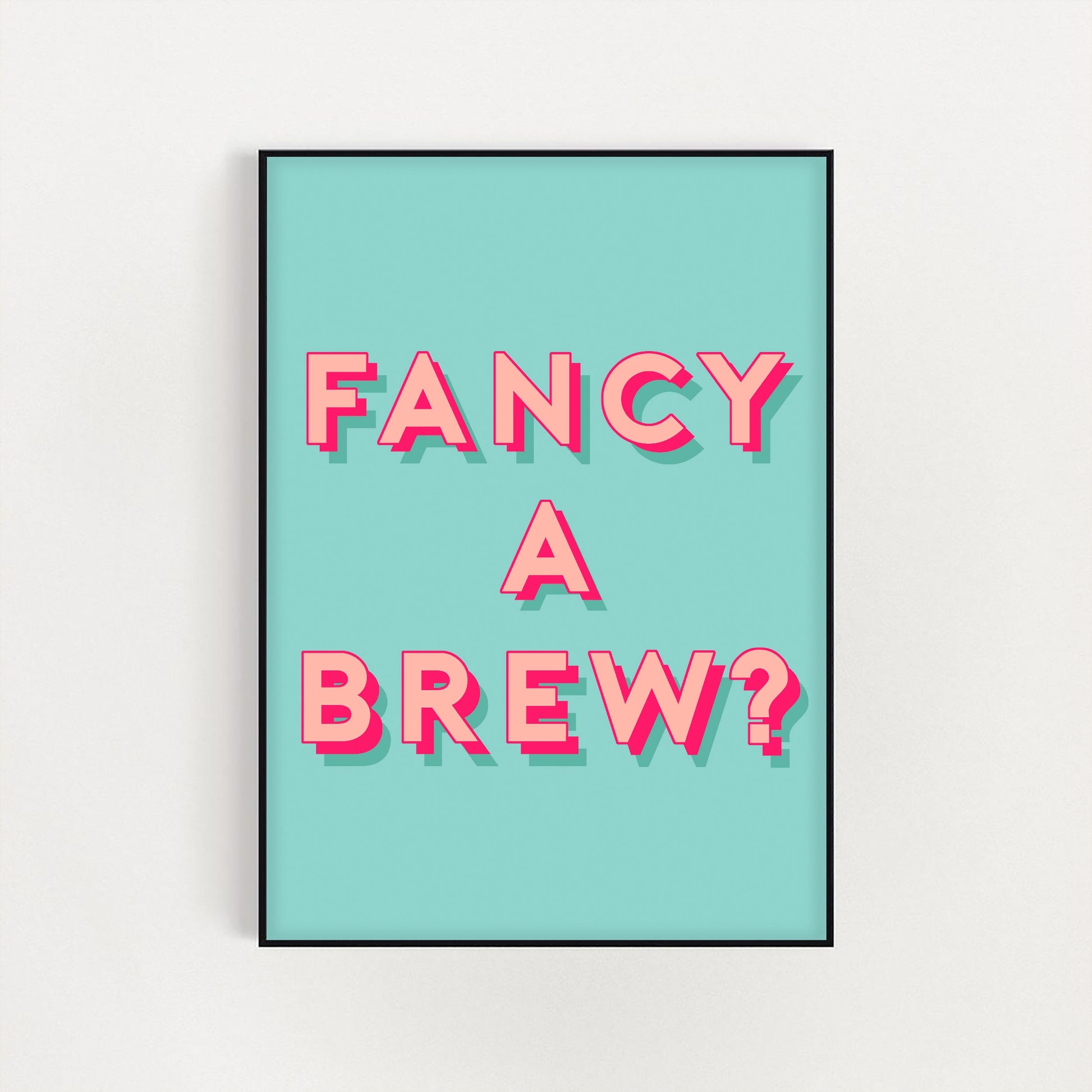 Fancy a Brew? Print. Original typographic and illustration. Perfect for adding happy colour to your kitchen!